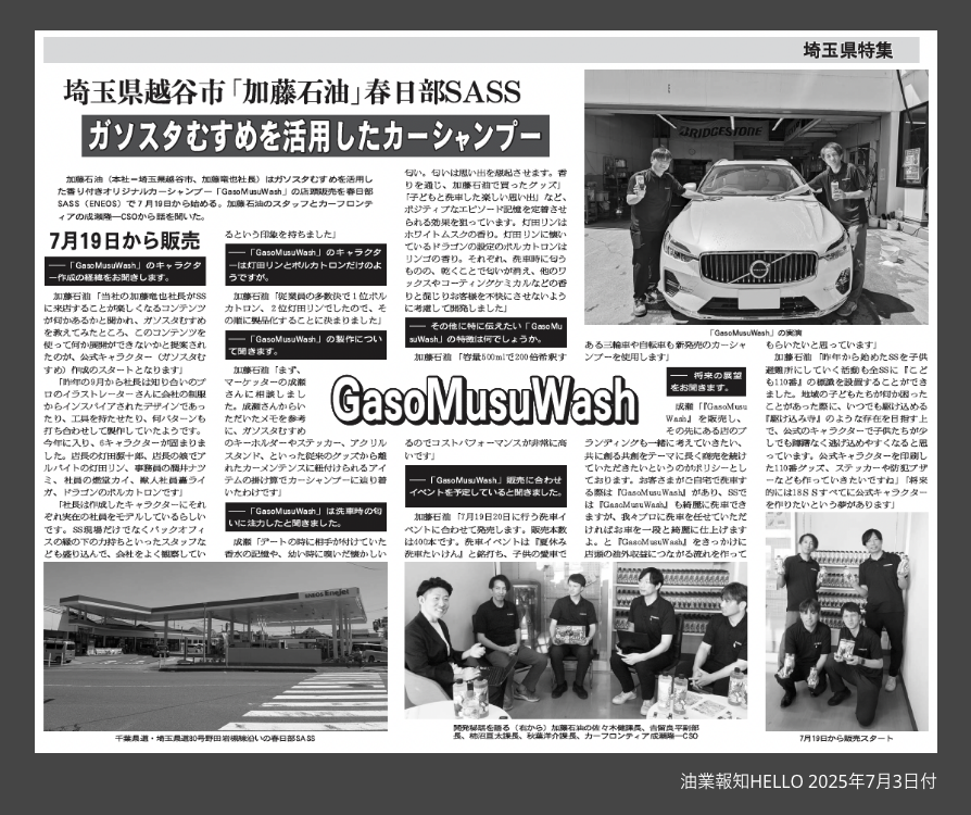 2025.07.11|ガソスタむすめを活用したシャンプー「GasoMusuWash」について日刊油業報知HELLOに掲載されました。